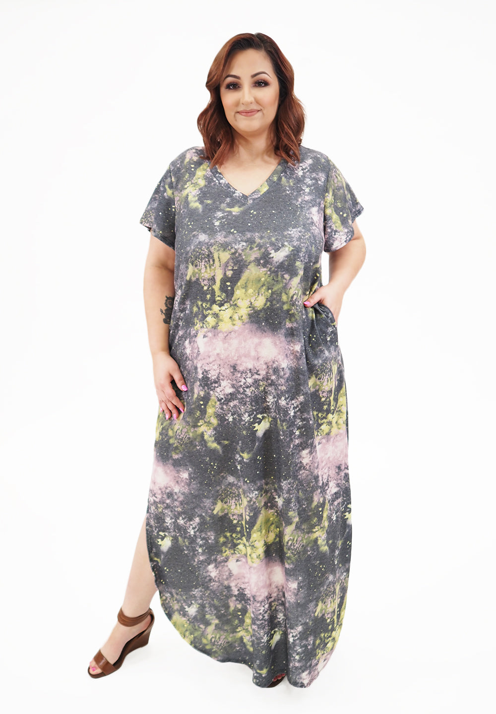 It doesn't get any easier than this comfy maxi dress with pockets! Go ahead, wear this one anywhere and everywhere or wear her in with your favorite pair of slippers! She is the ultimate anytime dress.?ÿ