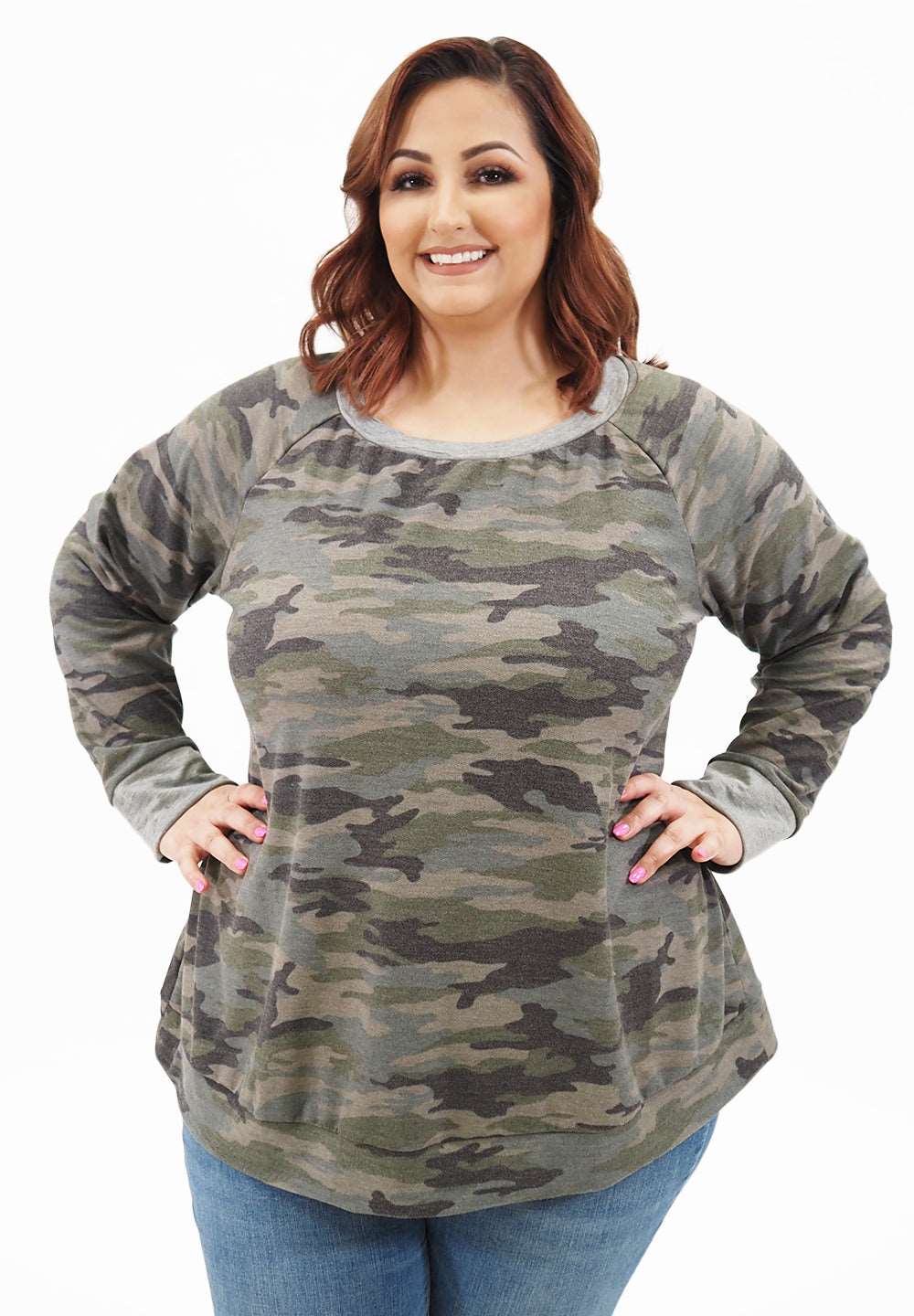 A super cozy french terry sweatshirt. Trendy reversed fabric trim and shallow scoop neck. Perfect paired with skinny jeans or our Devon Joggers